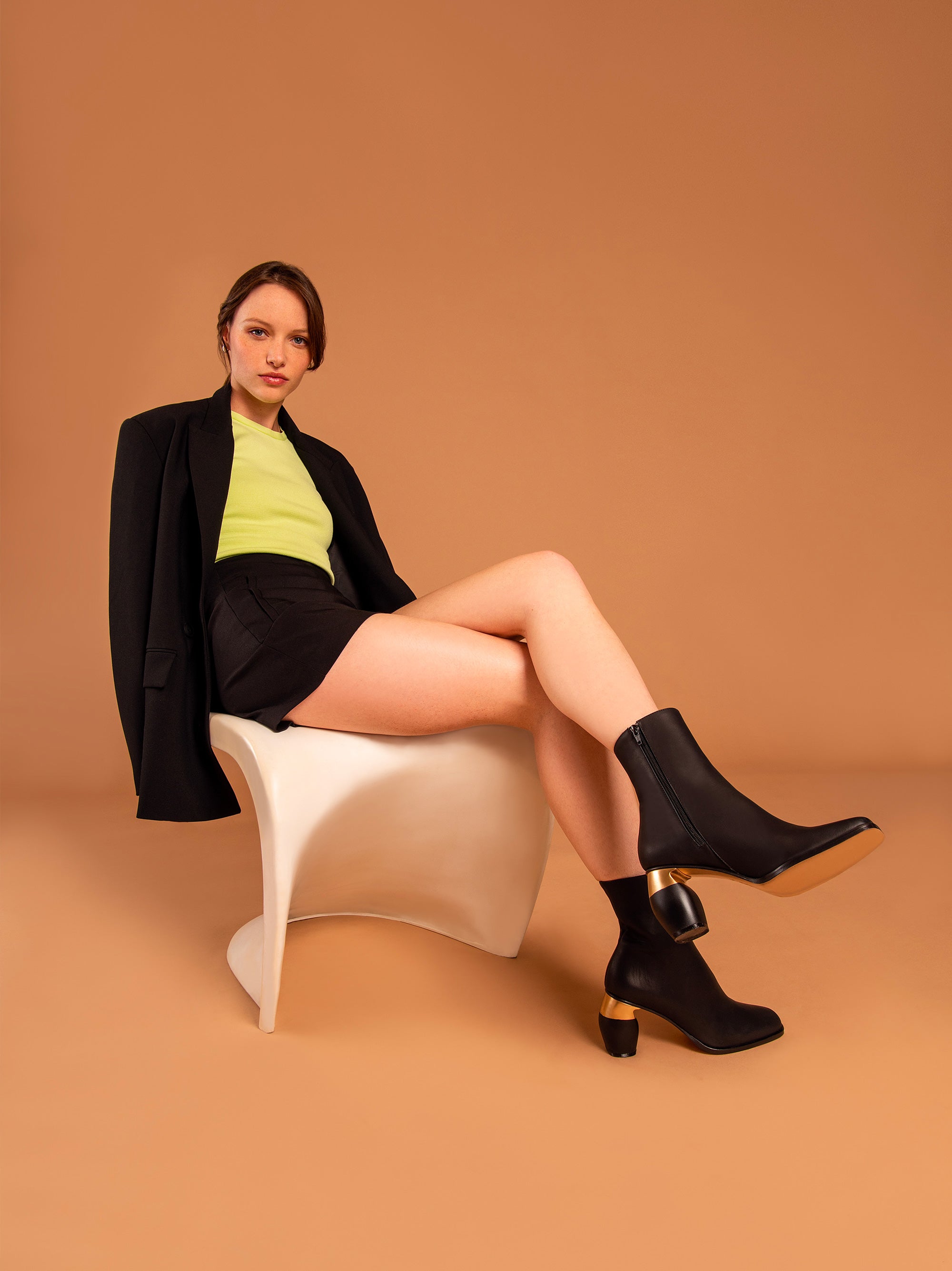 • Talons interchangeables : Sublimez vos bottines avec ces talons recouverts d’une véritable feuille de pierre de mica blanc, pour une allure moderne et sophistiquée.